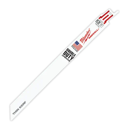 Thin Kerf metal-cutting blades with the Double Duty Upgrade™ feature a tooth form that is optimized for the longest life and increased speed. Tough Neck™ is engineered to protect against tang breakage and delivers the strongest SAWZALLreg; blade tang on the market. Maintaining a short profile and thin body, these blades are ideal for making fast, flexible cuts.