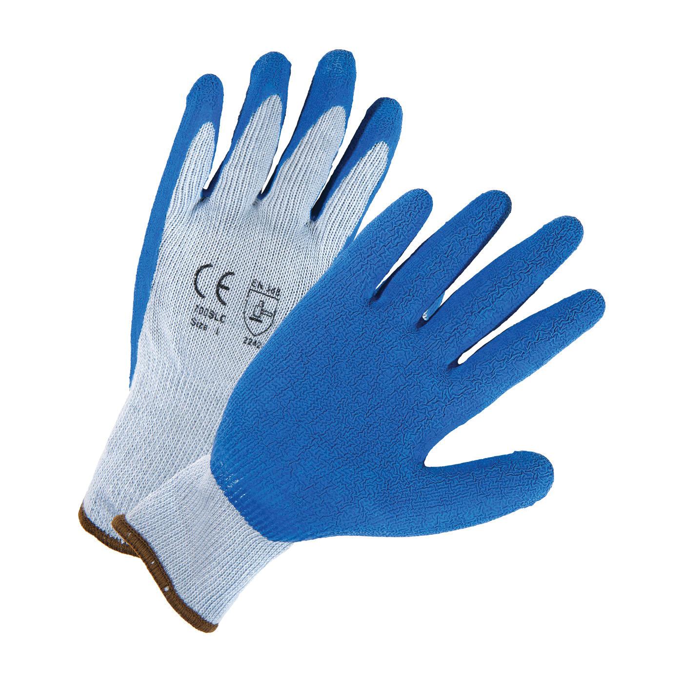 PIP® PosiGrip® Work Gloves, XL Size, Unisex Gender, Latex Palm, Cotton/Polyester Glove, Blue/Gray Glove, Seamless Knit Style, Rib Knit Wrist Cuff, Coating: Latex, 10-1/2 in Length, 10 ga Thickness, Resists: Abrasion, Cut, Impact, Puncture, Tear