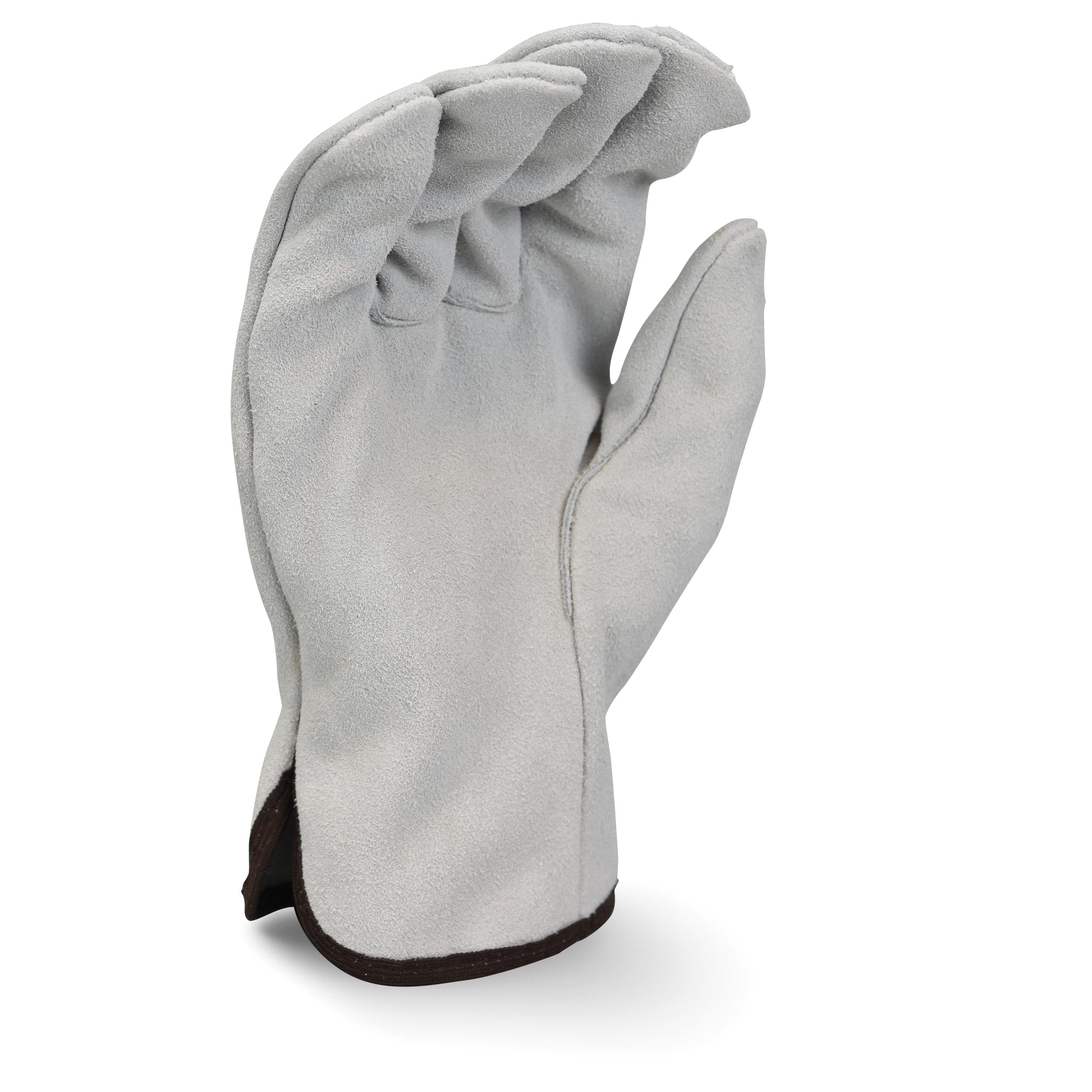 The RADIANS® RWG4010 leather palm glove is a great economy leather glove option, offering an economy gray split cowhide leather driver, straight thumb, shirred wrist and a cloth hem.
