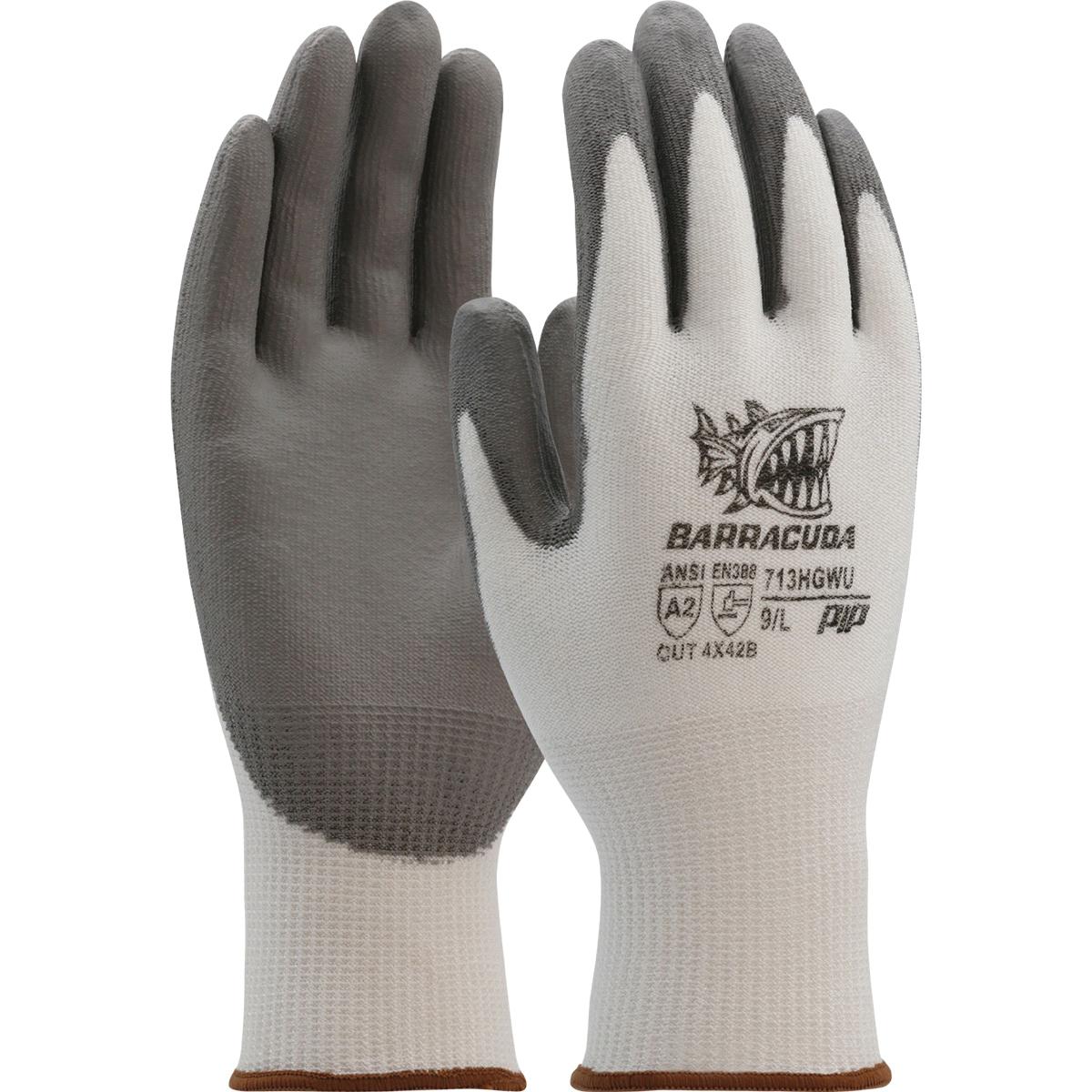 PIP® Barracuda® Cut-Resistant Gloves, L, Polyurethane Palm, PolyKor®, White, Seamless Style, PolyKor® Lining, Knit Wrist Cuff, Flat Grip, Polyurethane Coating, ANSI Cut-Resistance Level: A2, 13 ga Thickness, Resists: Abrasion, Cut