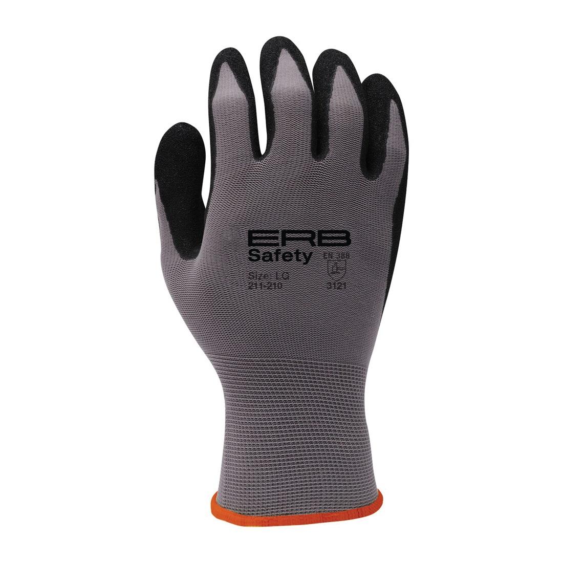 ERB® Knit Gloves, M Size, Nylon Glove, Spandex Lining, Glove Color: Gray, Elastic Cuff, Coating: Nitrile, Resists: Abrasion