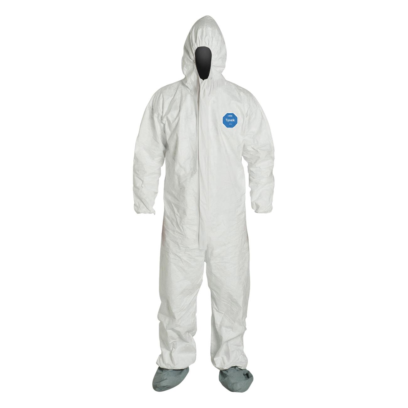 Tyvek® 400 garments are composed of flash spun high density polyethylene which creates a unique, nonwoven material available only from DuPont™. Tyvek® 400 provides an ideal balance of protection, durability and comfort of any limited use fabric technology. Tyvek® 400 fabric offers an inherent barrier against particles. Protection is built into the fabric itself; there are no films or laminates to abrade or wear away. Tyvek® 400 fabric's durability advantage over microporous film fabrics delivers consistently better barrier, even after wear and abrasion. Applications include lead and asbestos abatement/remediation, general maintenance/operations, spray painting, general clean-up.