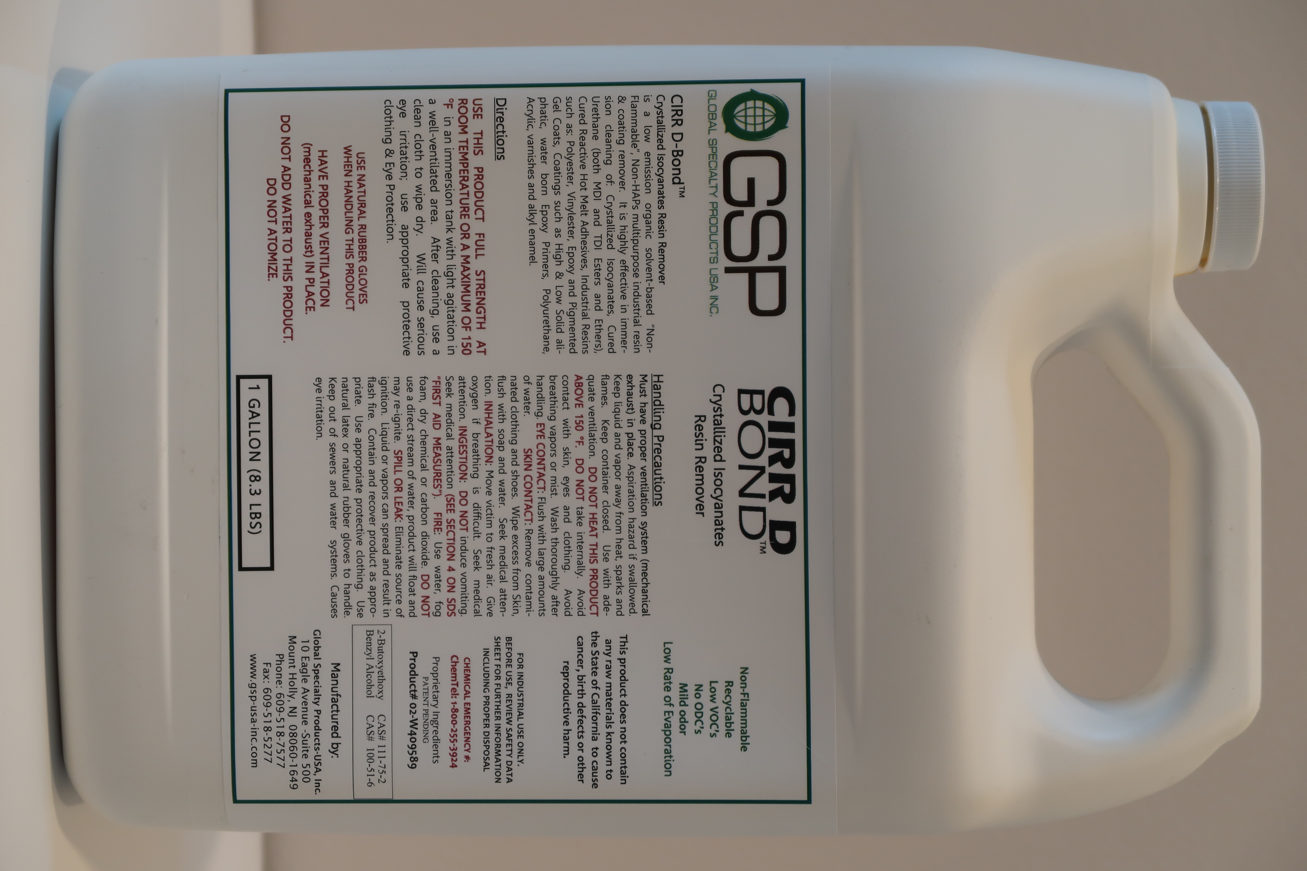 CIRR D,BOND™ Crystallized Isocyanates & Resin Remover is an immersion cleaner used to remove both cured and uncured polymer, along with resin buildup.