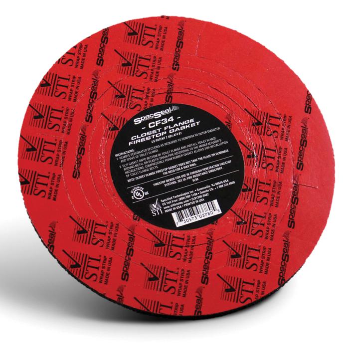 SpecSeal® CF Series Closet Flange Firestop Gasket, Specifications: 1/4 in THK, 320 deg F Expansion, 800% Volume Expansion, <130 deg F In-Service Temperature, <130 deg F Storage Temperature, Intumescent Pad/Rubber, Red, For Use With: 3 or 4 in Closet Flange